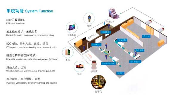 智能倉(cāng)儲(chǔ)管理系統(tǒng)包括入庫(kù)業(yè)務(wù)、出庫(kù)業(yè)務(wù)、倉(cāng)庫(kù)調(diào)撥、庫(kù)存調(diào)撥和虛倉(cāng)管理。系統(tǒng)根據(jù)MES系統(tǒng)的生產(chǎn)排程,自動(dòng)計(jì)算生產(chǎn)開線的首套料需求,推送到倉(cāng)管員手持終端及備料看板并指導(dǎo)首套料及配送;正常生產(chǎn)后,系統(tǒng)根據(jù)回傳的機(jī)臺(tái)設(shè)備產(chǎn)能、實(shí)際產(chǎn)料數(shù)、報(bào)廢數(shù)、生產(chǎn)的優(yōu)先級(jí)等邏輯數(shù)據(jù)得出物料緊急需求狀況,通過(guò)看板、郵件、短信等方式通知或推送備料指令。